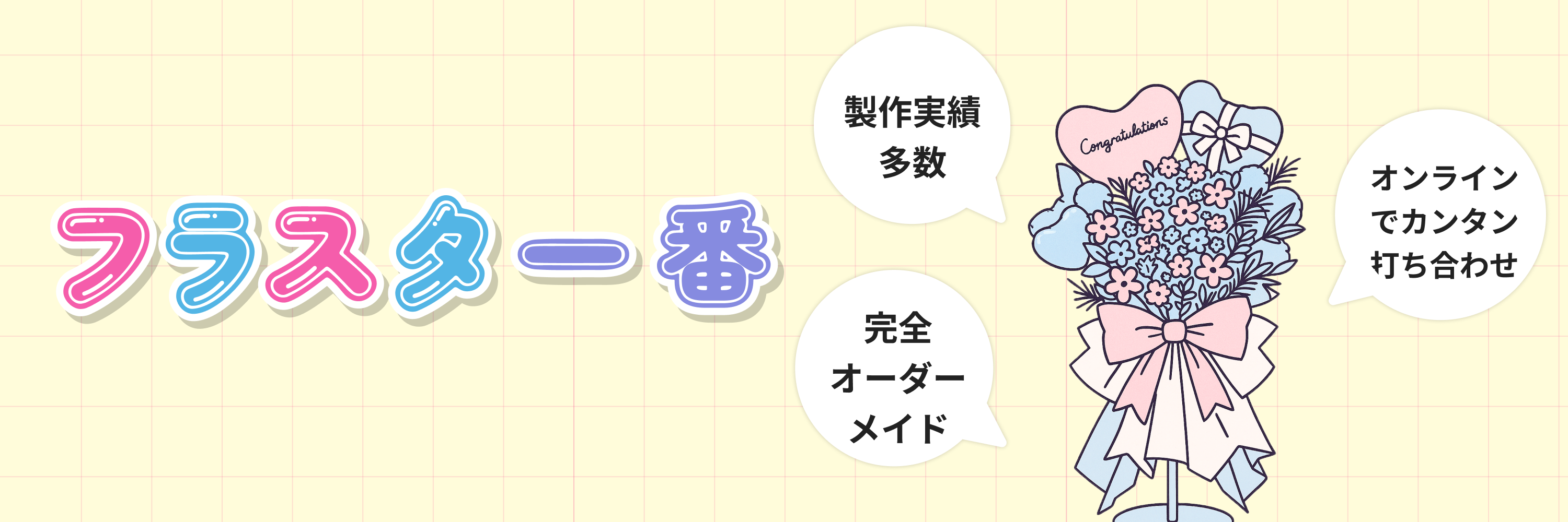 フルオーダーメイドで、世界にひとつだけの特別なフラスタをあなたの推しにお届けします。「他のファンとは一味違う、特別な贈り物をしたい」そんな気持ちを、全力でサポートいたします!イメージ画やラフスケッチからのご相談も大歓迎です。お気軽にご連絡ください。